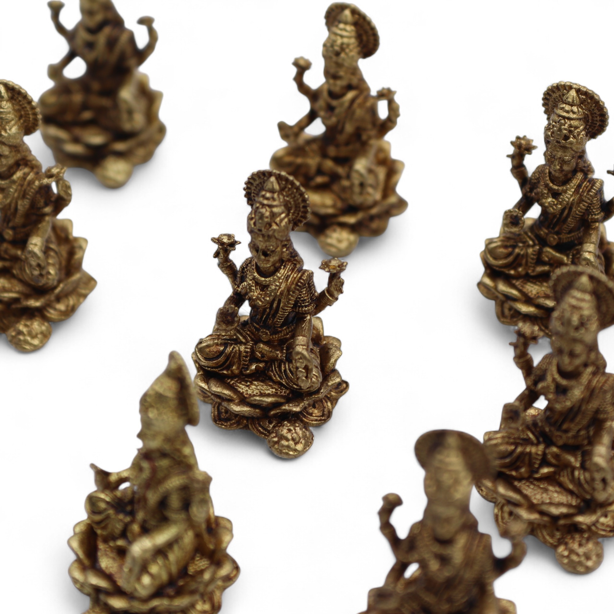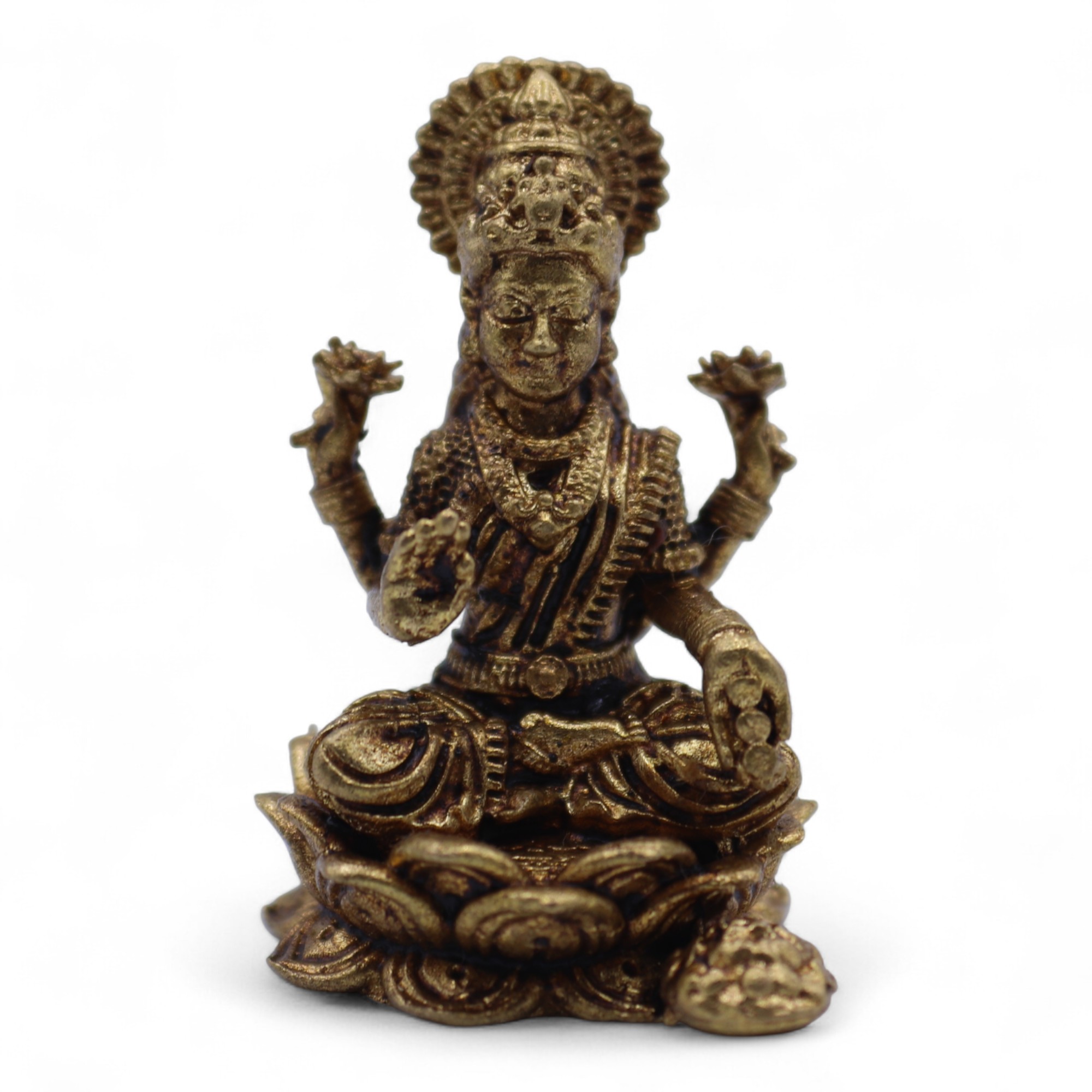 Ova Mesingana Minijaturna Laxmi figura prikazuje božicu prosperiteta u fino detaljnom, lijepo izrađenom obliku. Mala, ali simbolički bogata, idealna je za kućne oltare, duhovne trgovine, kolekcije poklona ili kao značajan suvenir za kupce koji traže blagoslove obilja i harmonije.
