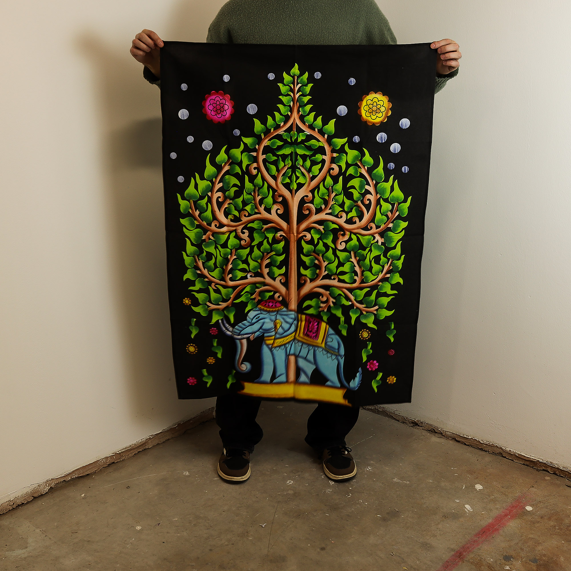 Ovaj prekrasan dizajn spaja dva snažna indijska simbola: slona, koji predstavlja mudrost, snagu i sreću, te Stablo života, simbol rasta, harmonije i povezanosti. Zajedno stvaraju značenjem bogat komad koji odjekuje kroz različite kulture i generacije.