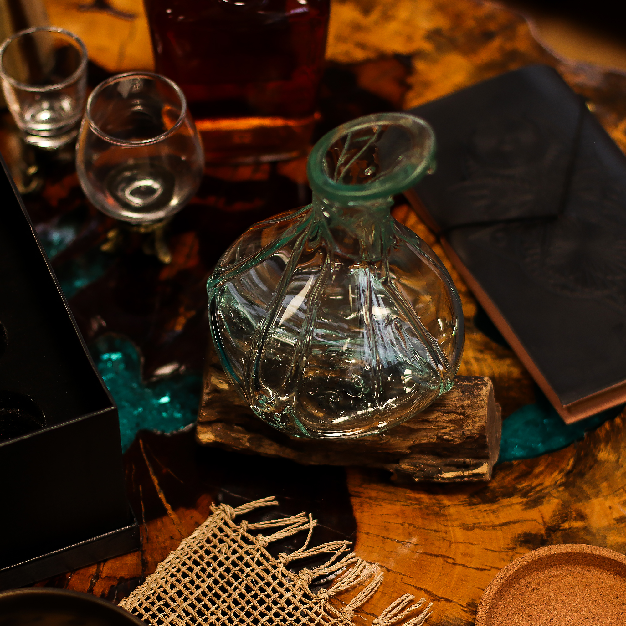 Ovaj dekanter od rastaljenog stakla predstavlja vrhunac tradicionalne balinežanske izrade.