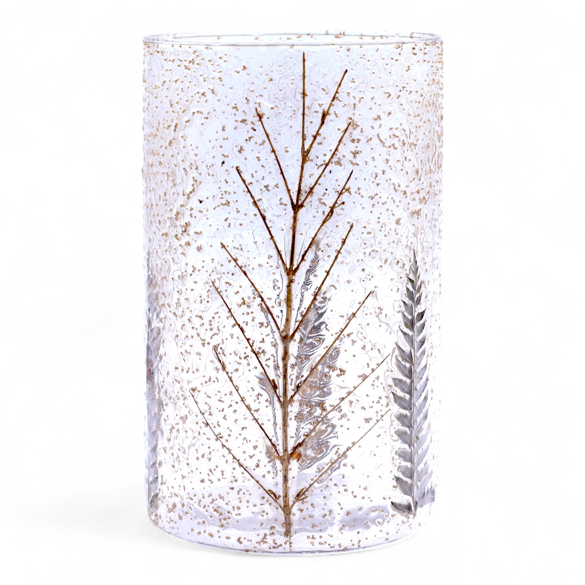 Stakleni Držač za Svijeću s Prirodnim Cvijećem Zdjela – Bor prikazuje pravo prešano zelenilo zatvoreno u reciklirano staklo, dajući svakom komadu nježan, prirodan šumski šarm. Prozračno staklo ističe botaničke detalje, nudeći trgovcima upečatljiv dekorativni predmet s autentičnom vizualnom privlačnošću.