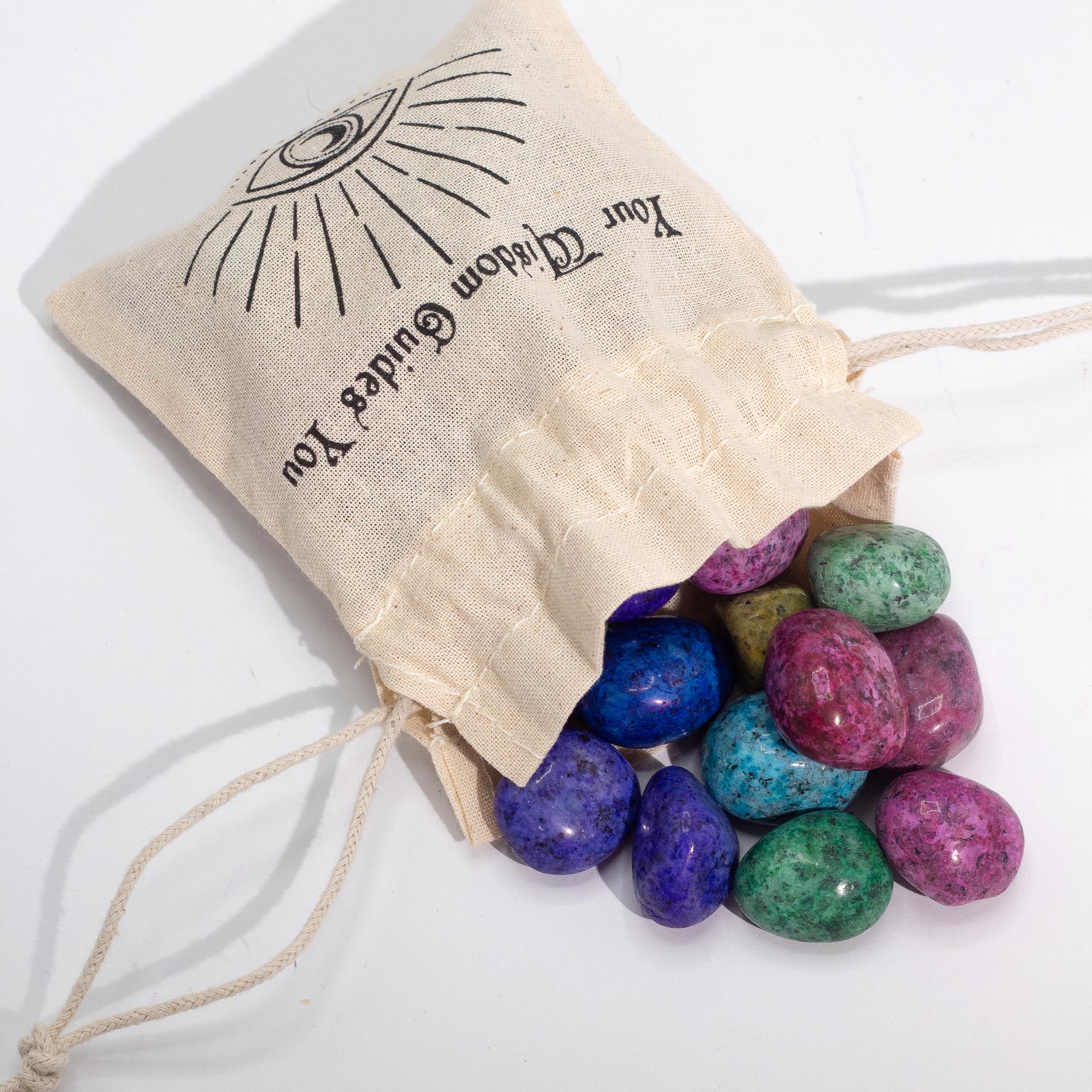 Dodajte dozu razigrane energije vašim kristalnim izložbama s našim Obojenim Indijskim Dalmatincima oblikovanim u polirane kamenčiće. Svaki komad je poliran do savršenstva i dodatno obojen kako bi njegov prepoznatljivi šareni uzorak još više došao do izražaja. Rezultat? Živopisna, upadljiva mješavina koja izgleda fantastično na policama, u zdjelicama ili kao dio izložbe “izaberi svoj kristal”.