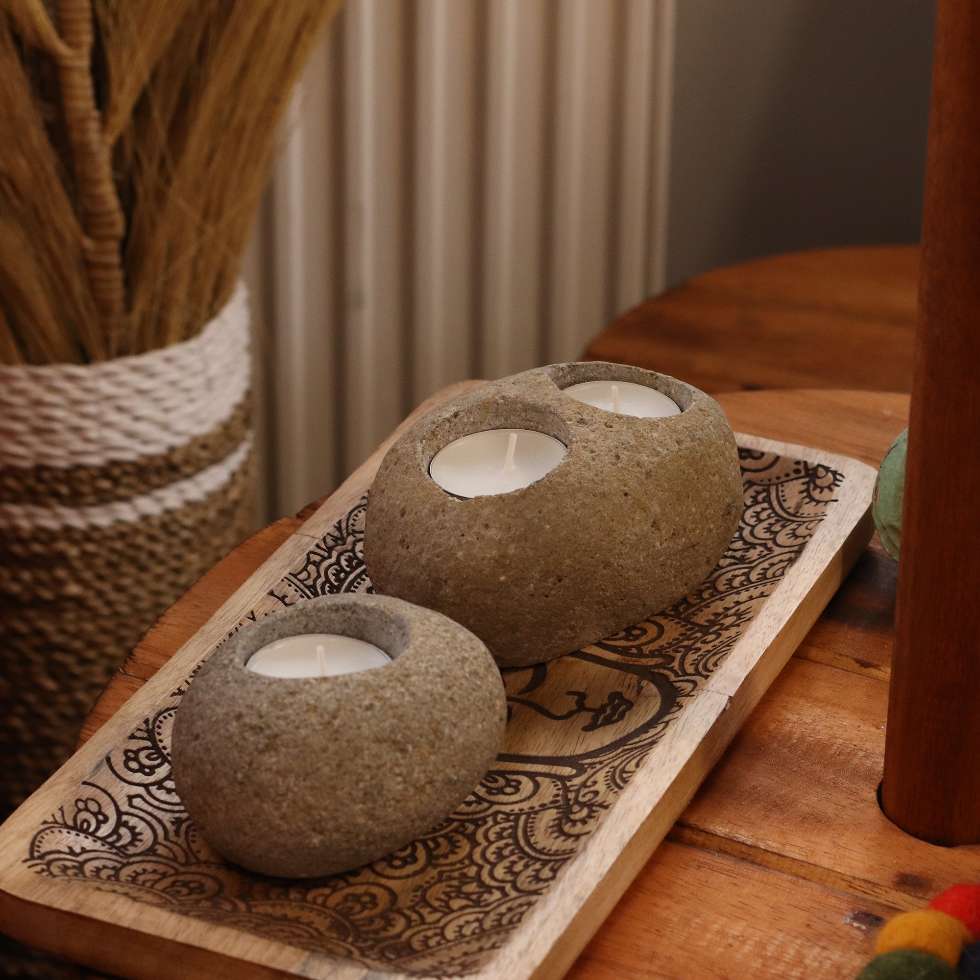 Izrađen od pravog riječnog kamena u Indoneziji, svaki držač za jednu lučicu slavi ljepotu prirode u njenom najčišćem obliku.