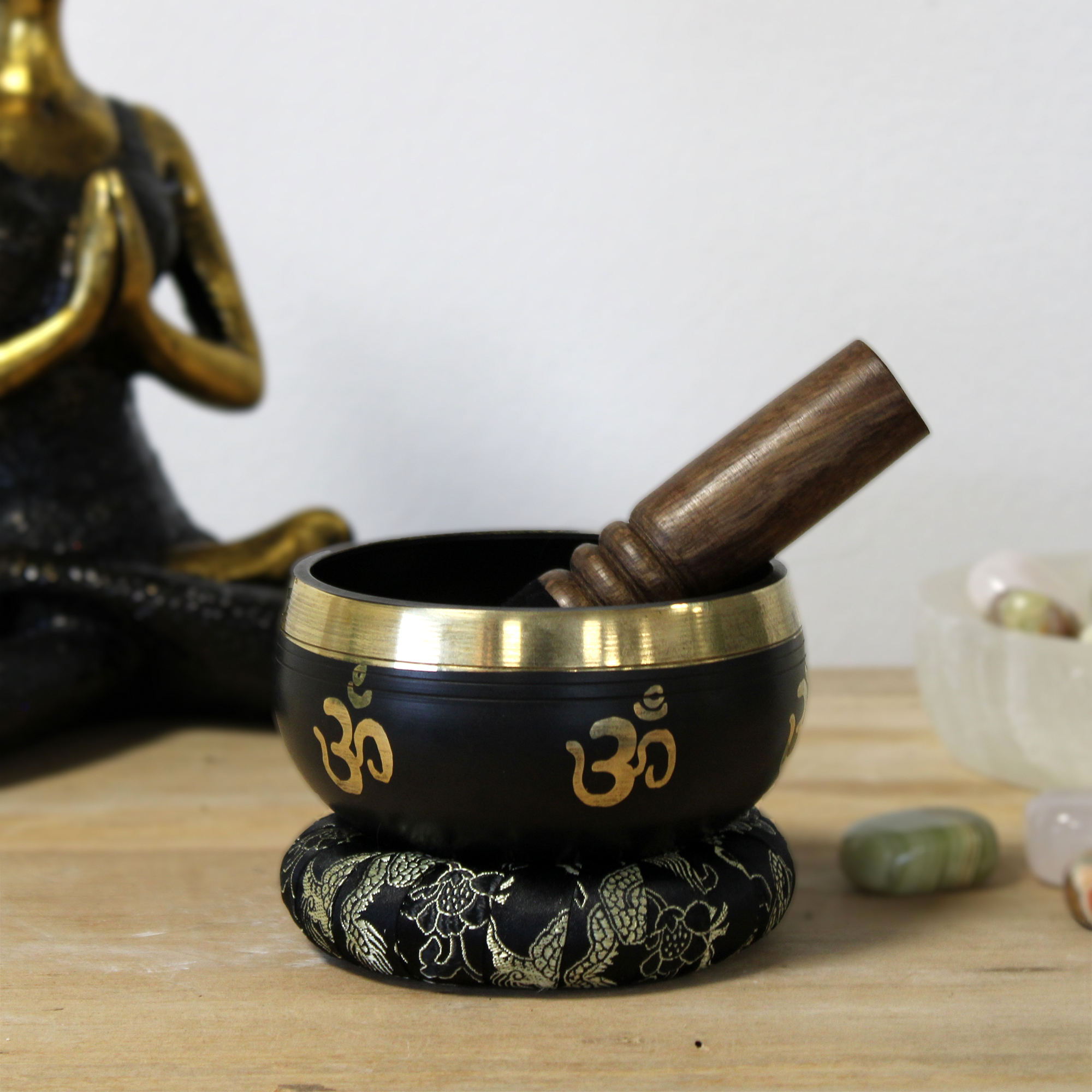 Ova zvučna zdjela ukrašena je simbolom Om, jednim od najvažnijih simbola u hinduizmu, budizmu i jogi, te se smatra svetim zvukom i vibracijom univerzuma.