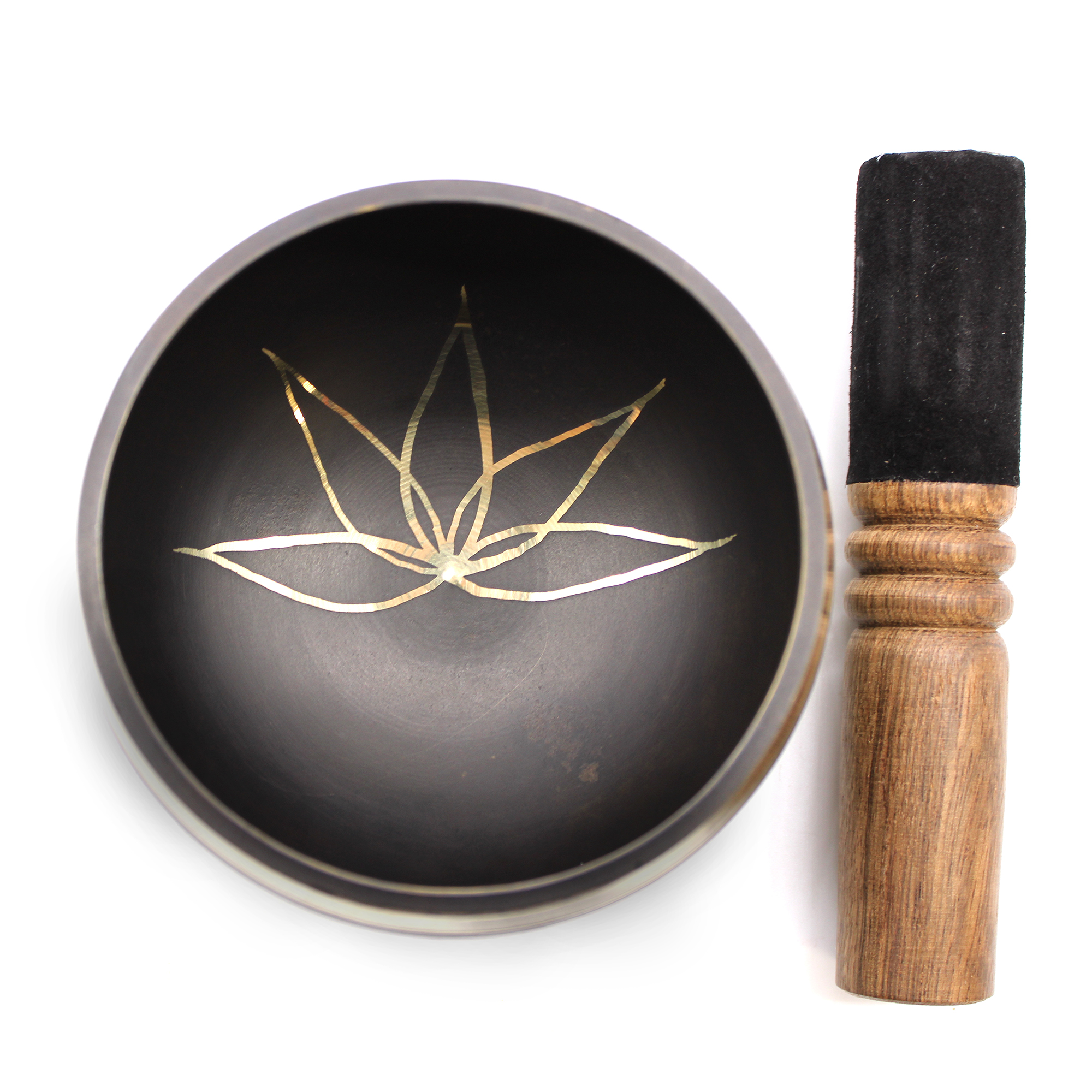 Ova zdjela ukrašena je simbolom lotosovog cvijeta, koji predstavlja čistoću, duhovni rast i prosvjetljenje. Set dolazi s drvenim čekićem za stvaranje umirujućih vibracija, jastučićem za stabilnost i torbicom za sigurno prenošenje i pohranu.