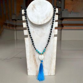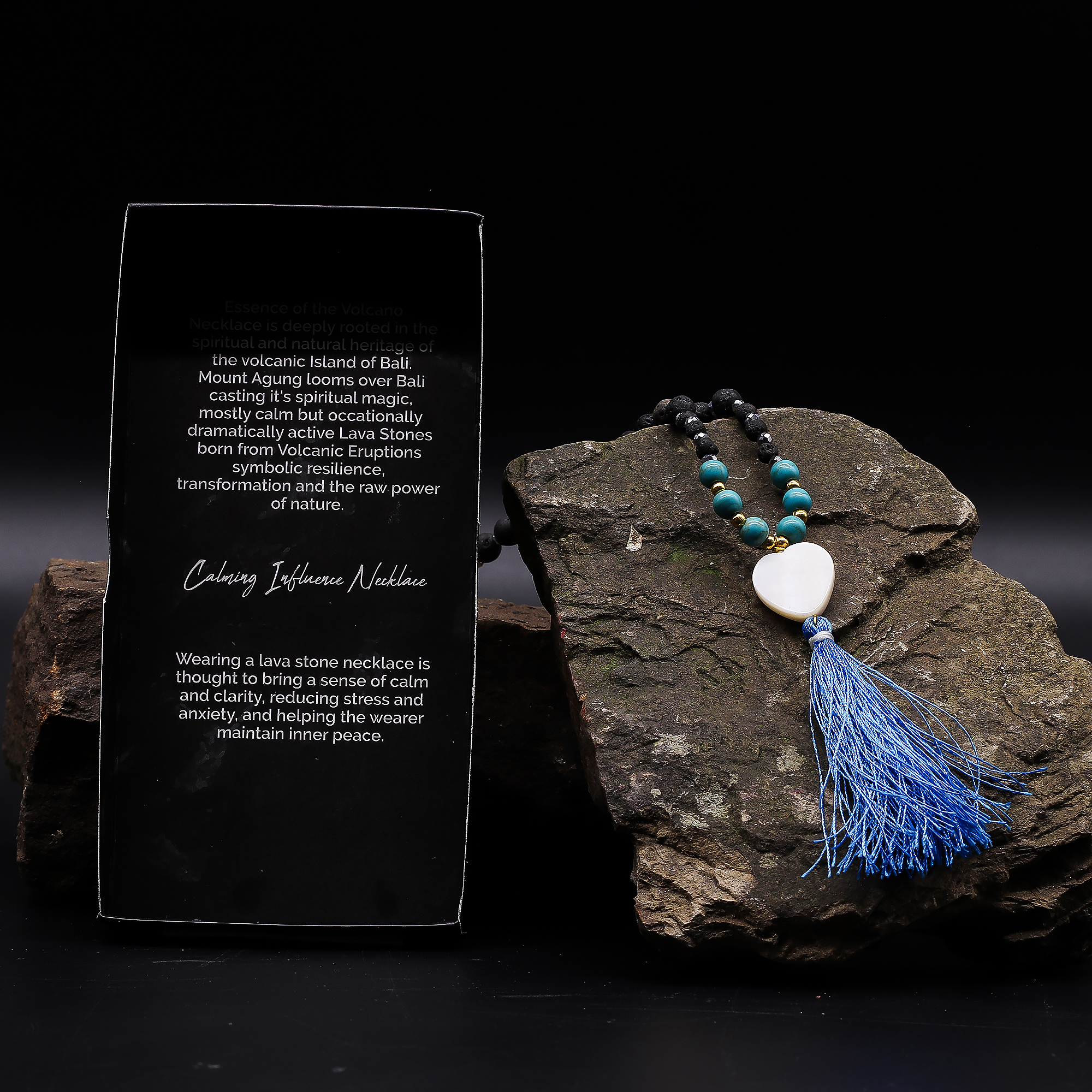S nježnim plavim resicama i uzemljujućim kamenjem lave, ova ogrlica utjelovljuje smirenost i emocionalnu ravnotežu.