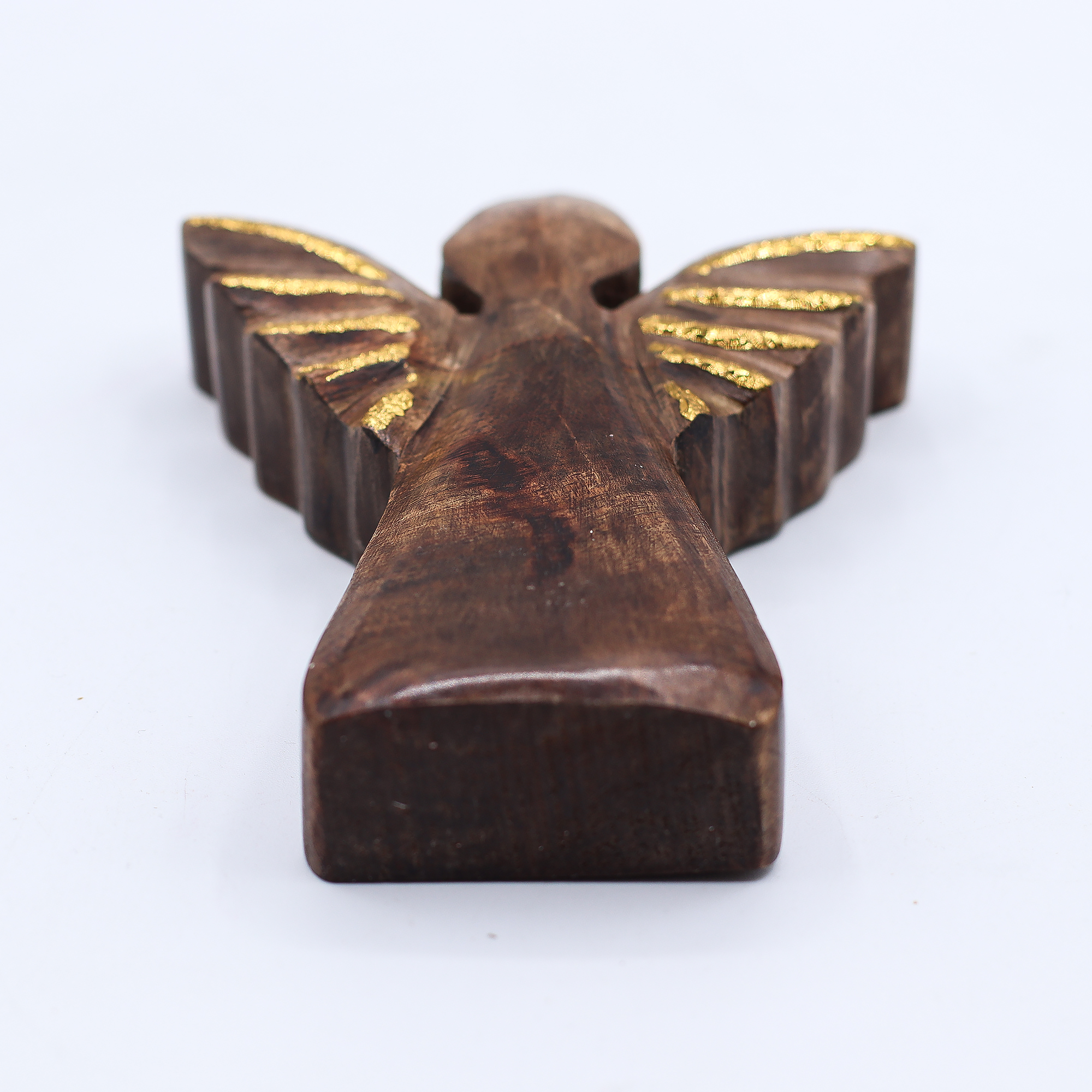 Ovaj šarmantni Anđeo od Drveta Manga veličine 12 cm sa Zlatnim Dekorom unosi toplinu i mir u svaki prostor. Ručno izrezbareno u Indiji od održivog drveta manga, ovog anđela krase nježni zlatni detalji koji mu daju dašak bezvremenskog šarma.
