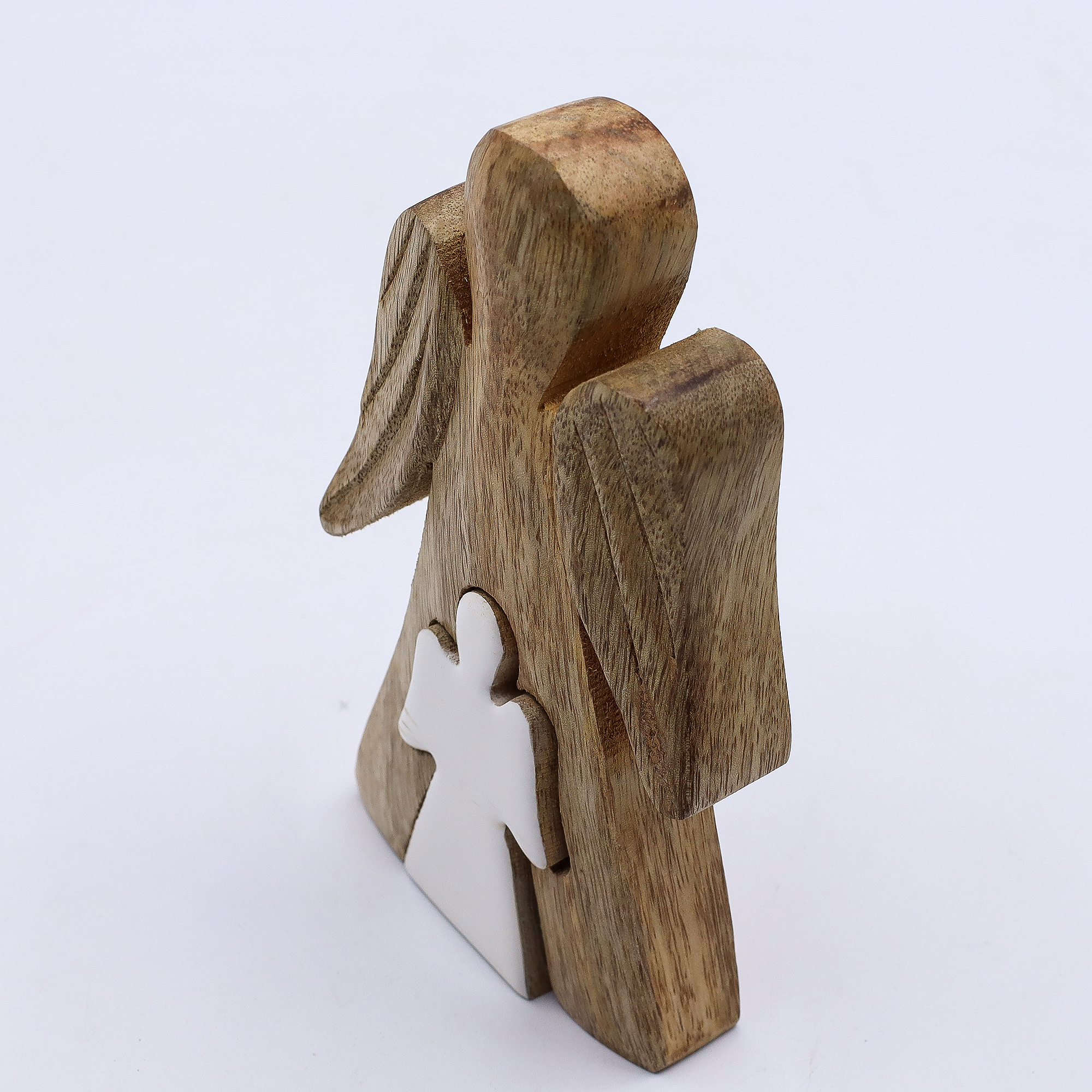 Ovaj impresivni Anđeo od Drveta Manga 15cm - Bijeli Emajl predstavlja jedinstveni dizajn anđela unutar anđela, kombinirajući bezvremenski oblik s modernim dodirom. Ručno izrezbaren u Indiji od održivog mangovog drva, ima glatku bijelu emajliranu završnu obradu koja ističe njegovu elegantnu siluetu.